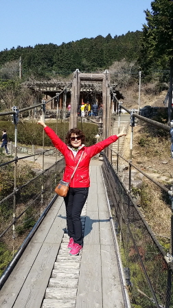 섬을 둘로 나눈 운하위에 걸쳐진 만관교를 지나 따뜻한 온천욕으로 피로를 씻습니다