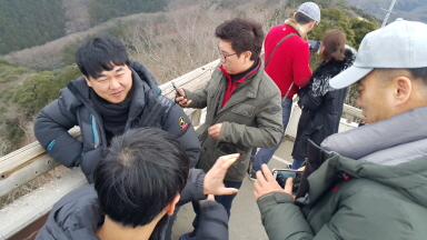 마을정취를 느껴보며 카미자카전망대의 안개낀 숲길이 참인상적입니다