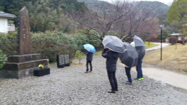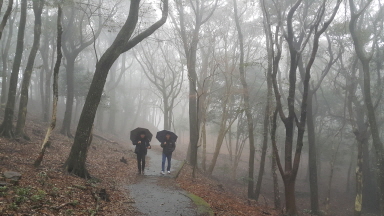 이른아침 촉촉한 빗줄기입니다 마을의 우리역사의자취를 돌아보며