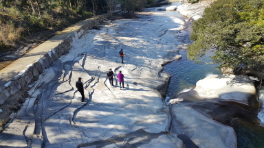 아유모도시계곡에 화강암바위아래 햇살가득 푸른녹음에 그야말로 힐링입니다