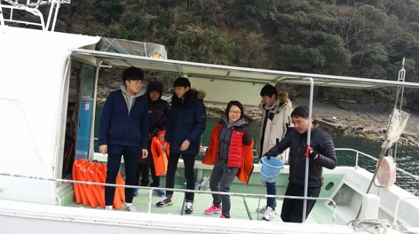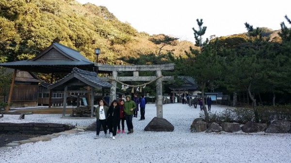 아리아케등산팀, 낚시팀, 나머지분들은 여몽연합군과의 전투에서 전사한 병사들을 모신 고모다하마신사, 바로 옆의 고모다하마 해변의 파도가 거칩니다