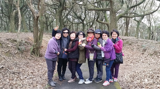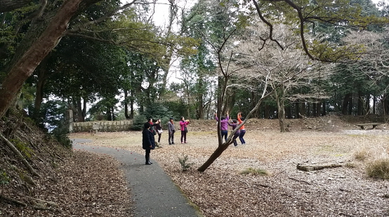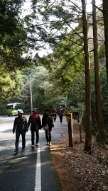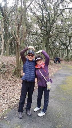 가미자카 전망대에서는 숲길에서 연출 사진을 찍으며 즐거워 합니다