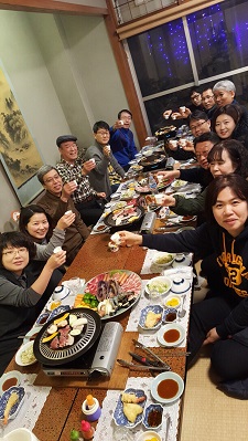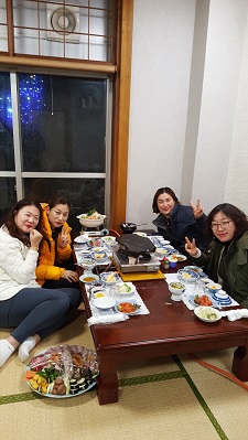 다음 관광지인 아소만 전경을 자랑하는 에보시타케 전망대와 신화가깃든 와타즈미 신사를 뒤로 만관교까지 오늘 관광 일정을 모두 마치시고 호텔 체크인을 서둘러 봅니다. 부쩍 쌀쌀해진 날씨에 모든 선생님들 고생 많으셨습니다. 저녁식사는 푸짐한 이시야키 석식 및 해산물 바베큐로 즐거운 시간 보내시며 오늘 하루일정을 마무리 해봅니다.