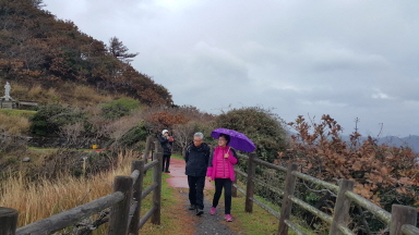 한잔들 나누어주시고,, 짙은 안개로 에보시다케의 멋진아소만정경을 보지못하심이