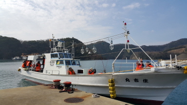 니이하마에도착하여 낚시일행분들은 잔잔한 아소만사이를 가로지르며 떠나시고