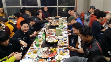 건배사와 함께 화기애애한 분위기로 깊은밤 저물어갑니다