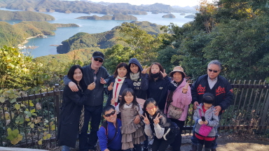다른일행분들과 에보시다케전망대에 오르고 맑은 아소만은 점점의 수채화입니다