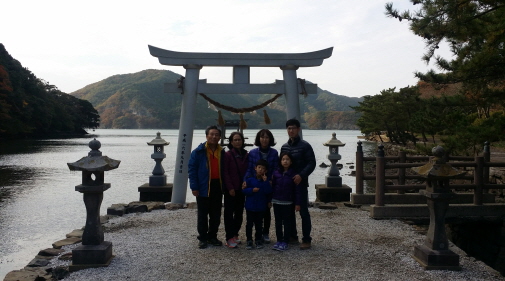 에보시전망대 아래쪽의 와타즈미신사에서는 신사참배도 시연해보고 오미쿠지(올해의 운세)도 뽑아보시며 즐거워하십니다