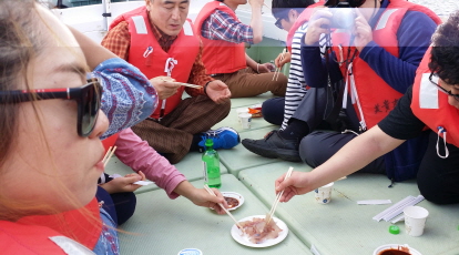 승부욕이 있으신 국장님은 낚싯대를 놓지 못하시고, 몇분은 벌써 싱싱한 회를 안주로 소주파티입니다