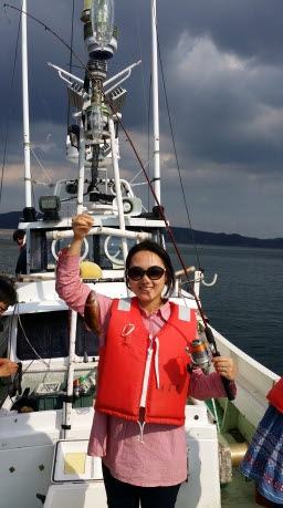 저를 포함해 12명이 정신없이 회를 먹어대니 선장님이 서비스로 직접잡은 팔뚝만한 생선을 3마리나 서비스로 장만해주십니다