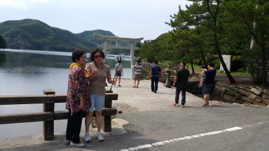 와타즈미신사의 아소만 입구는 잔잔히 물에 잠긴 토리이의 정경과 함께,