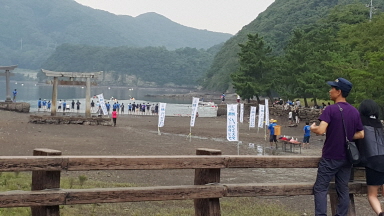 아소만에 자리한 와타즈미신사에는 시카약대회가 한창입니다