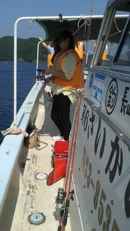 엄마의 미소로 반겨주시는 낚시배의 선주와 함께 약20분정도의 위치까지 바람에 머리가 엉망이 되어가며 달려가, 고기가 있을까? 하는 의문으로 선주의 말에 따라 낚시줄을 풀었다. 남자분의 선두로 10분모두...?^^(쉿! 그날의 일은 10분만의 비밀로~)
