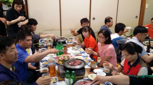 이번 저녁의 주 메뉴는 바베큐였습니다. 마침 가지고 오신 매실주가 있어서 한 순배, 두 순배씩 이어질 때 마다, 건배 소리와 함께 모든 분들의 행복한 웃음소리가 식당을 가득 채웠습니다.