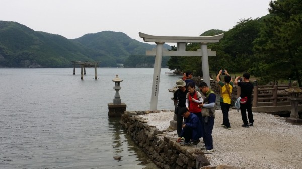 다리를 지나 한참 더 가면, 일본의 '가장 아름다운 해변 100선'에 뽑힌 미우다 해수욕장에 도착합니다. 에메랄드 빛 맑은 바다, 바위섬을 배경으로 사진을 찍으면서 이번 1박 2일 간의 관광일정을 마무리 합니다.
