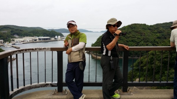 현지의 날씨는, 비는 안왔지만 무척 흐린 날씨여서, 첫 일정으로 향한 한국전망대에서의 부산 조망은 불가능했습니다. 아쉬웠지만, 한편으론 이런 선선한 날씨가 관광을 하기에 알맞은지도 모릅니다. 그곳 조선역관사 순난지비 앞에서 일행 전부가 단체 사진을 찍고, 슈시단풍길을 향해 버스를 타고 이동했습니다.