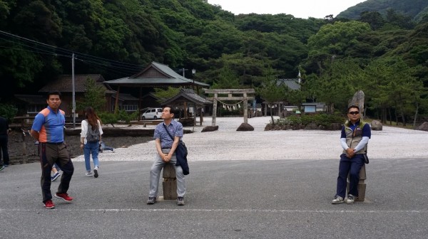 다음은 버스를 타고 하(下)대마에서 아소만을 조망할 수 있는 가미자카 전망대로 이동합니다. 이날따라 자욱한 안개에 휩싸인 전망대로 향하는 숲길은 신비로운 분위기마져 자아내고 있었습니다.