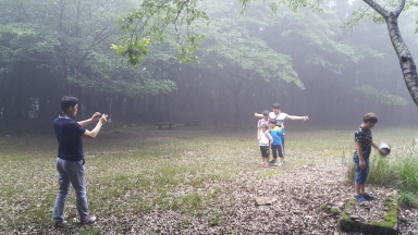 숲길이 장관입니다 아스라이 나무사이 깔려진 안개와 함께