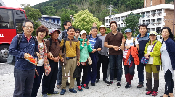 이즈하라항에 도착하자 버스로 가미자카로 이동, 서울팀 7분은 시라다케등산을 시작하시고,원주팀은 가미자카 전망대에 오릅니다