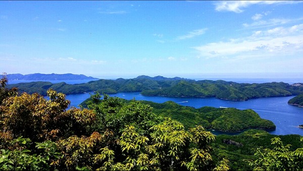이번 여행은 낚시를 오신 '회사동료' 여러분, 훌륭한 자제분과 부모님이 함께한 가족, 그리고 세상에 둘도 없는 자매분, 이 세팀이 함께 한 여행이었습니다. 우선, 낚시를 오셨던 이 선생님께서 제게 보내주신 아름다운 풍광의 사진을 세 장 보여드립니다. '아소만의 절경'과 '미우다 해수욕장'의 맑은 물, 그리고 다시 아소만의 바다와 숲이 어우러진 아름다운 풍광입니다.