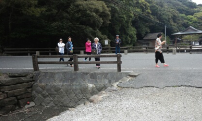 와타즈미 신사에 도착, 편백 나무 숲 밑에 가만히 서서 향을 맡아봅니다.