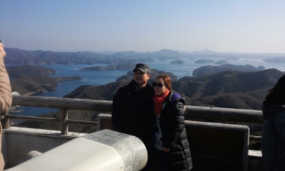 팔각정의 한국 전망대에서 기념샷을 찍으시고...