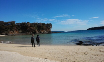 미우다 해변의 희고 고운 모레에 우리의 발자국을 남겨봅니다.