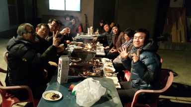 바닷가 인근의 민박집에서의 바베큐 파티입니다
