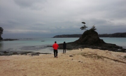 미우다 해변의 희고 고운 모레에 우리의 발자국을 남겨봅니다.