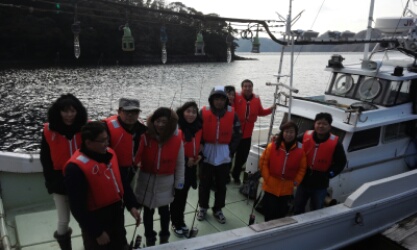 낚시를하시러 아소만으로 손흔들며 떠나시는 손님들에게
