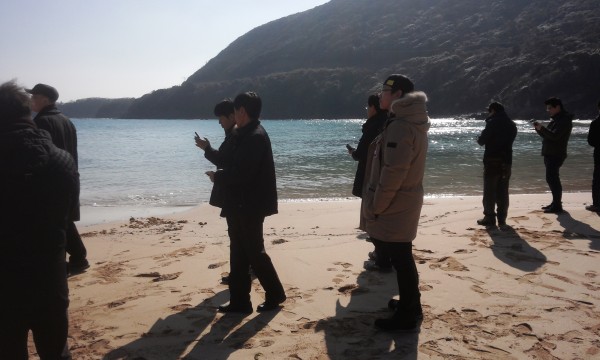 미우다 해변의 희고 고운 모레에 우리의 발자국을 남겨봅니다.