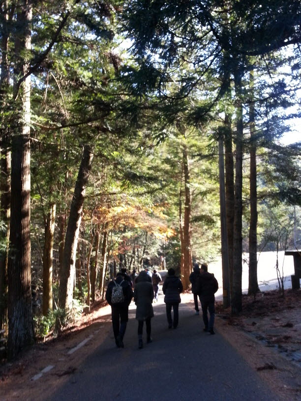울창한 편백나무와 단풍나무 숲길인 슈시를 향해봅니다.