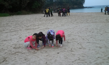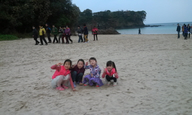 모래사장위에 그림도 그리고 부모님들은 귀여운 꼬마들사진찍기에,