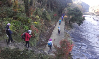 아유모도시 계곡에서 가볍게 체조 후 산책을 1시간 한 뒤