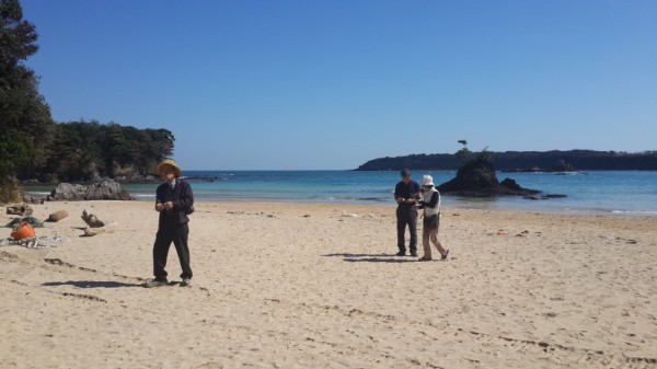 에메랄드 빛깔을 뽐내는 미우다하마 해수욕장에서 첫 발자취를 남깁니다.
