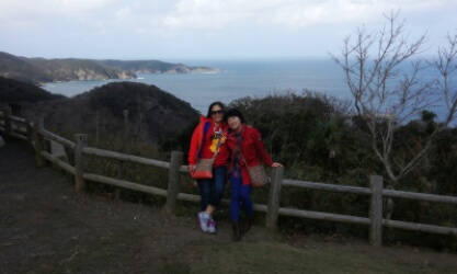 찰칵 소리 재미있어 하시네요~ 에보시타케 전망대에 오르자