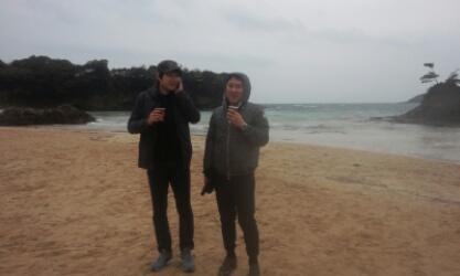 손에 커피 한 잔씩 들고 해변가를 거닐어 봅니다.