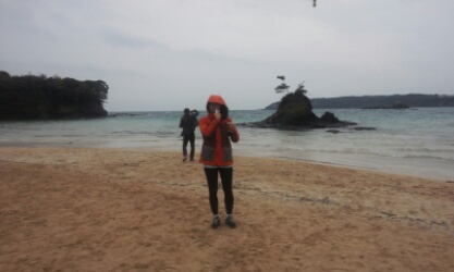 모래 사장에 발자욱이 하나 둘 씩 찍히고