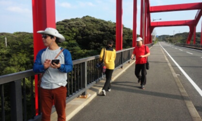흔들 다리에서 셀카 촬영, 요즘 유행 셀카봉~~ㅎ