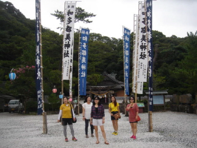 와타즈미신사에 도착합니다 마쯔리 준비에 부산한 사람들,,
