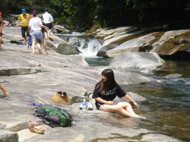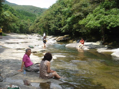 우거진 녹음과 편편한 화강암 바위에 삼삼오오 모여 앉아 더위를 식히시고