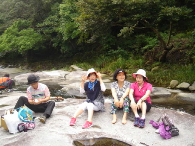 먹거리 잔뜩들고 화강암 계곡바위에 삼삼오오 둘러 앉아 발에 물도 담그시고