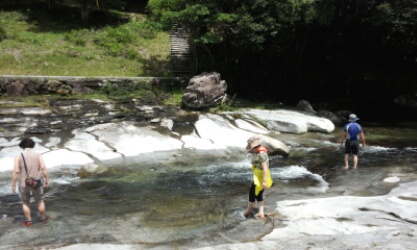화강암 바위에 엉덩이 걸터 앉아 얘기 나누시며 계곡 물 속에
