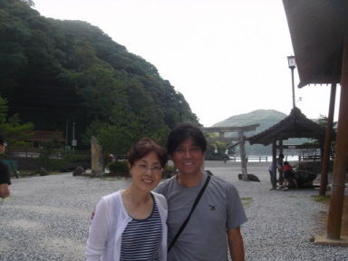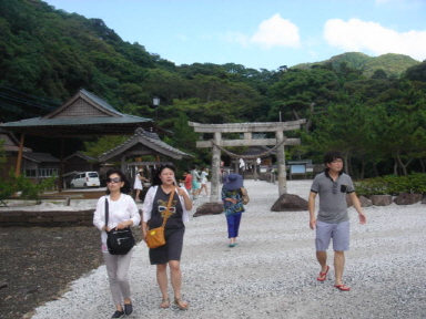 와타즈미 신사앞 토리이는 물이 다 빠져나가고 그래도 이국의 정취에