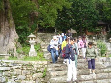마을의 우리의 역사의 흔적들을 살펴보며 팔번궁신사의 녹나무그늘이 시원합니다