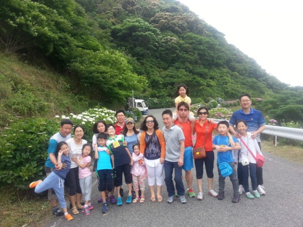 아름다운 수국앞에서 단체사진도 찰칵, 개인사진도 찰칵하고 찍어봅니다.