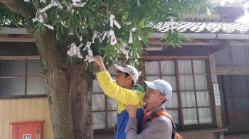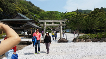 와타즈미 신사에 도착하여 편백향을 맡으며 신사를 둘러보고