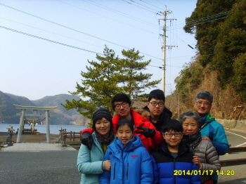 와타즈미 신사에 도착하니 바람이 불어 춥게 느껴지지만 기념 촬영 한컷 찍으시고