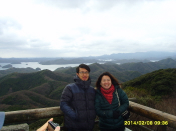 에보시타케 전망대에 올라 잔잔한 아소만을 배경으로 기념 사진 많이 찍으시고