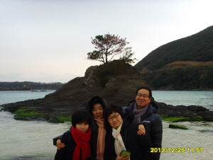 사오자키에 올라 예쁘게 핀 동백꽃을 보시며 어릴적엔 곧잘 동백꽃잎을 따서 먹으면 잎이 달달해서 맛있었다며 추억담도 들려주시고 모든 관광을 끝내고 항으로 이동합니다.
